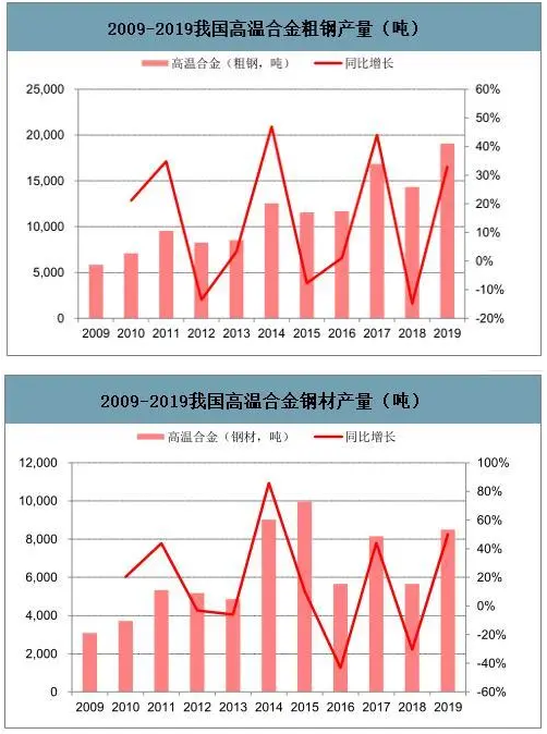 2019 年我國(guó)重點(diǎn)優(yōu)特鋼企業(yè)高溫合金鑄錠產(chǎn)量約為 1.91 萬(wàn)噸,同比增長(zhǎng)32.95%,鋼材產(chǎn)量約為 0.85 萬(wàn)噸,同比增長(zhǎng) 50.13%,我國(guó)高溫合金業(yè)務(wù)供給出現(xiàn)快速增長(zhǎng)的情況。但目前我國(guó)高溫合金整體市場(chǎng)需求約為 4 萬(wàn)噸,供不應(yīng)求的問(wèn)題依然顯著。由于技術(shù)壁壘高、認(rèn)證周期長(zhǎng)、資金需求大等因素,我國(guó)高溫合金的產(chǎn)量增長(zhǎng)緩慢,成材率較低。