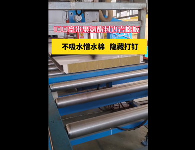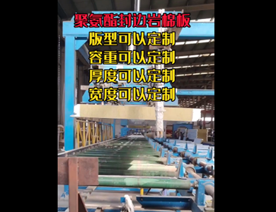 我們公司引進意大利賽浦連續(xù)生產線,采用了六組份在線工業(yè)微機自動操作(SIEMENS)混合澆注技術。生產流程分為開卷覆膜—壓制成型—鋼板預熱—高壓發(fā)泡—高溫固化—鋸切—板材冷卻—碼垛—自動打包等功能與一體的自動化生產線,年生產能力為130萬平方米。